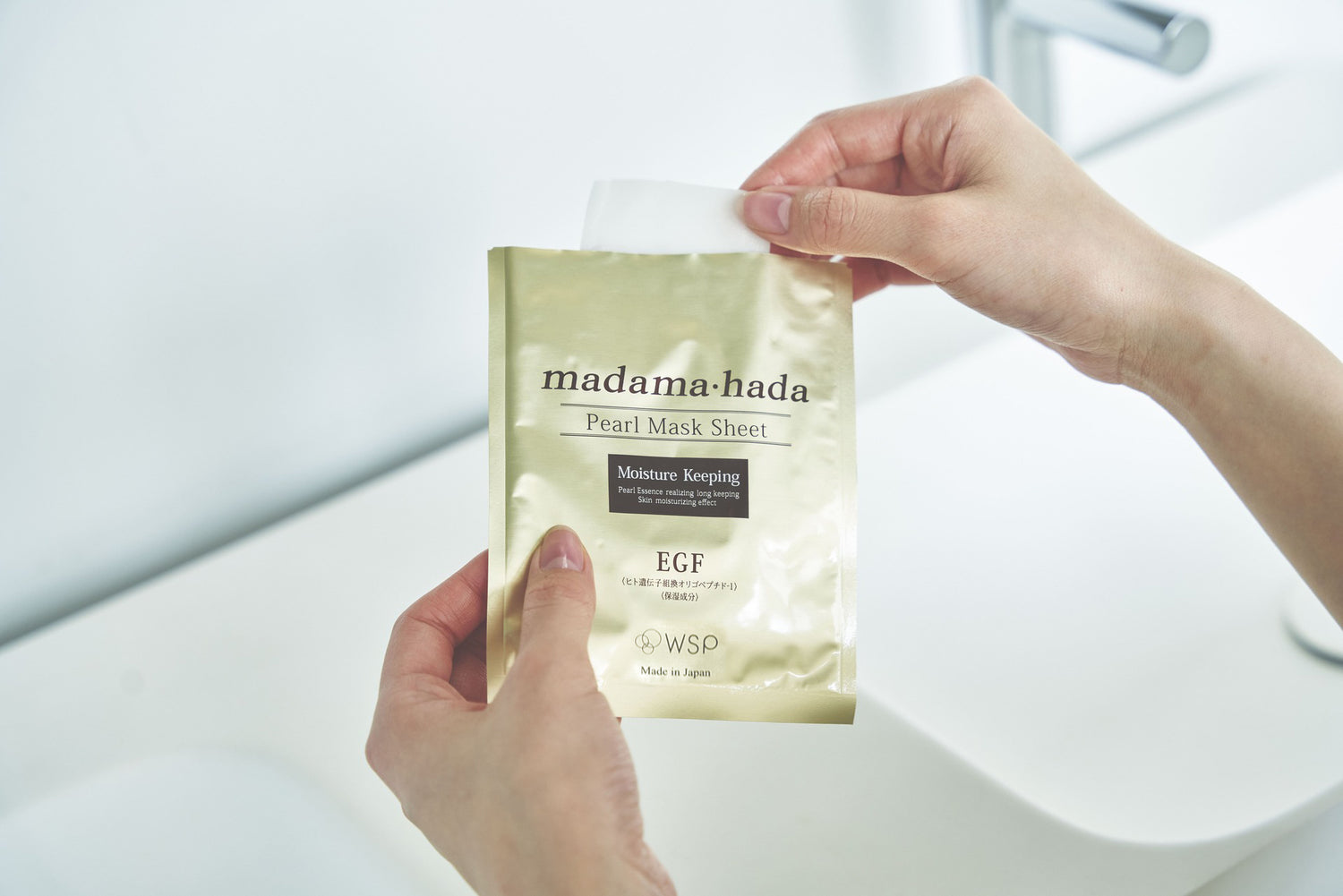1枚のシートに美容成分をお25ml配合。真珠エキス、ヒアルロン酸、コラーゲン(保湿成分)をたっぷり配合することでお肌にしっかり届きます。驚くほどキメが整い、お肌が柔らかくなり化粧のりが格段にアップします。